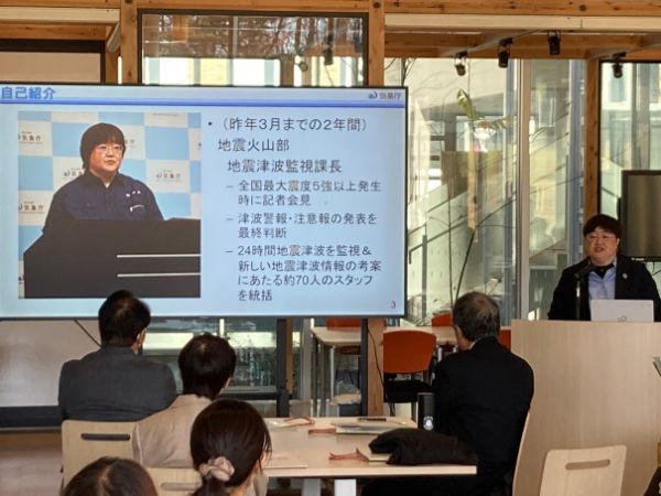 第一部の「講演会とトーク」では、今年4月に仙台管区気象台開所以来初の女性台長にご就任された鎌谷紀子さん(本学理学研究科修了)に「私の歩んできた道と東北大学」と題してご講演をいただいたのち、理学部同窓生の大草芳江さんのご司会により会場の皆さまからのご質問にお答えいただきました。